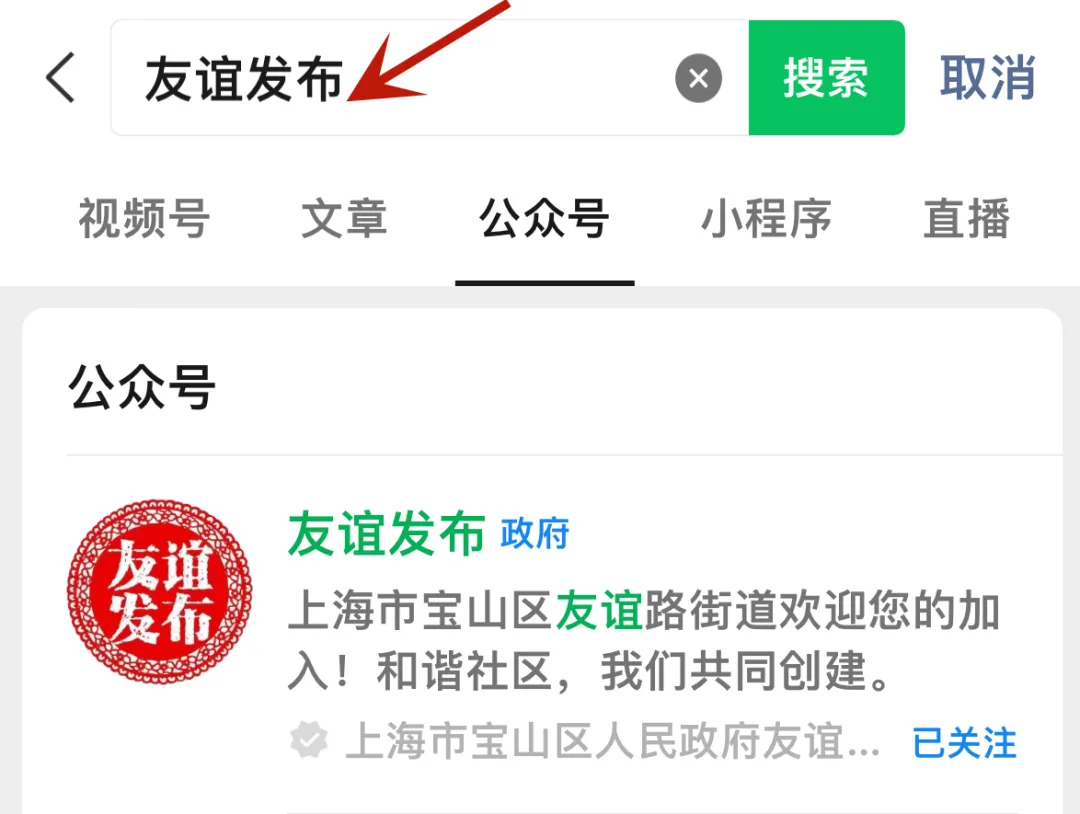 第一步:关注“友谊发布”微信公众号