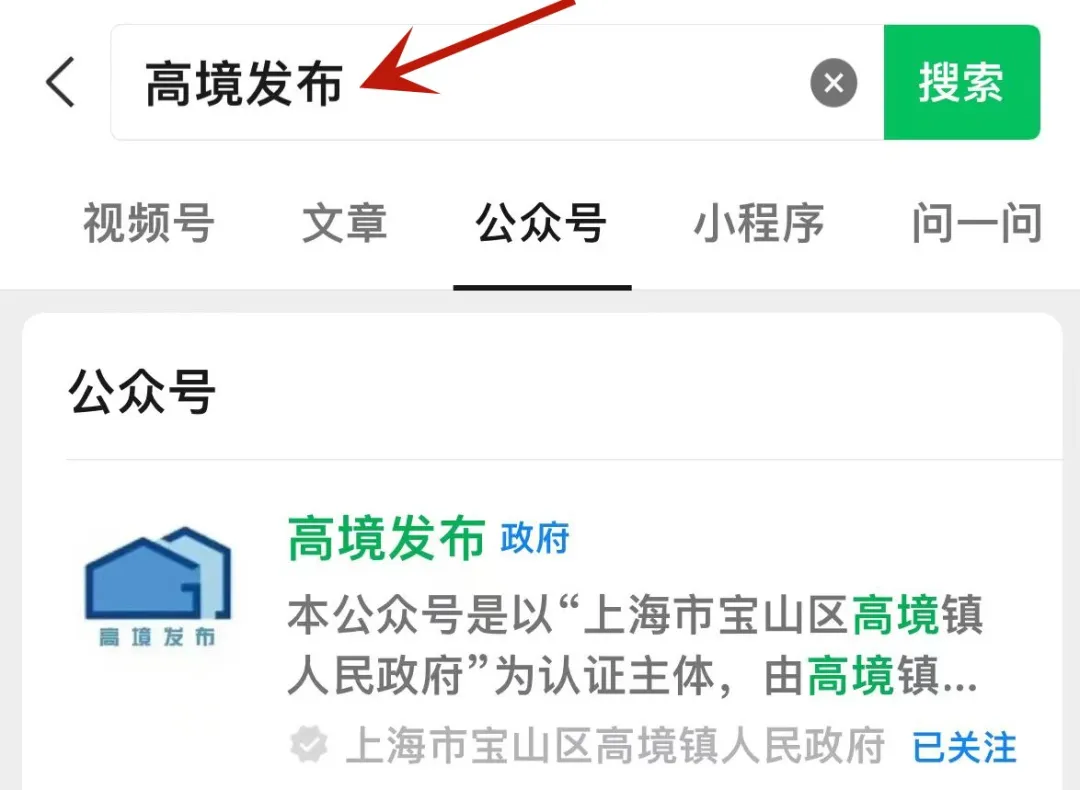 第一步:关注“高境发布”微信公众号