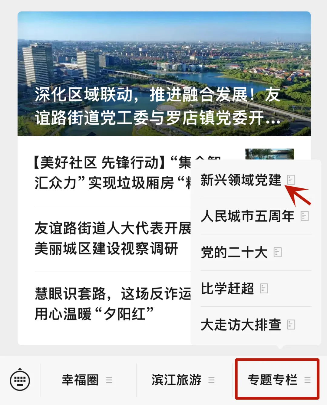 第二步:进入“新兴领域党建”专栏