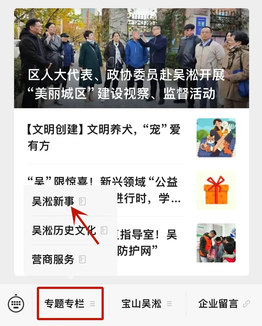 第二步:进入“吴淞新事”专栏