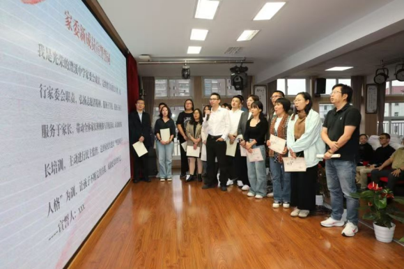 借着本次机会,校家委会王心瑶爸爸、韩宇麒妈妈、陈腾汐妈妈、章习悦妈妈、徐雅涵爸爸由校家委主任及校领导颁发了聘书,并肯定过去一年新成员的参与和贡献。
