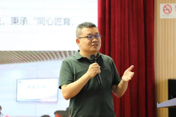 澧溪中学校级家委会主任陈健介绍了澧溪中学家委会整体情况和组织架构、家委会LOGO设计理念、家委会会歌介绍。我校家委会秉承“同心匠育,成就君子”的文化理念:共同目标产生匠心育人的共同期待,齐心合力达到精准育人的完美效果。用文化价值,规范家校育人理念,成就“君子”期望;用愿景激励,统一家校育人方式,实现“君子”目标。