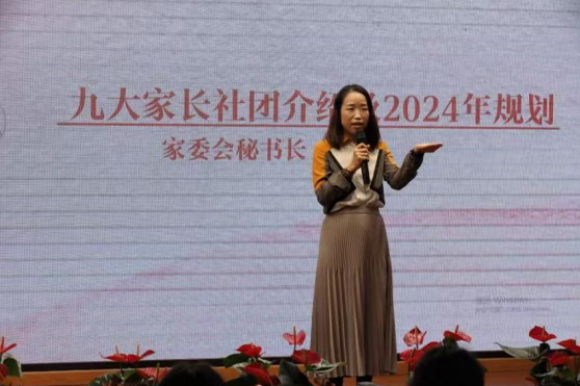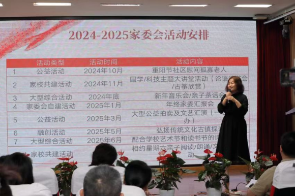 校级家委会策划部部长董瑶介绍了策划部的具体工作以及2024-2025家委会活动安排。她称策划部是所有活动的“总导演”,包括活动详细计划、文案编辑、海报设计、活动材料总结、各个部门任务分配等各方面,既要“策划好”,又要“协调好”,最终把活动办好。通过家委会活动安排,共同促进家长与老师之间的双向沟通,营造家长、老师和学生之间友好互动的教育氛围,全力创造有利于学生健康成长的育人环境。