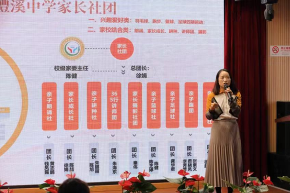 校级家委会秘书长徐娟对澧溪中学《家委会章程》进行了提纲挈领地解读,重申了家委会的宗旨,并详细介绍了新学年澧溪中学9大家长社团新学期计划。