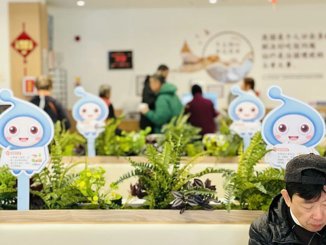 社区食堂门口,醒目的小兰花认知友好标识映入眼帘,漕河泾街道的认知友好吉祥物“漕小迪”以可爱的欢迎形象伫立一旁,仿佛在向每一位前来就餐的长者致以亲切问候。走进食堂,地标导视图为居民提供清晰指引,让大家可以轻松找到就餐位置。