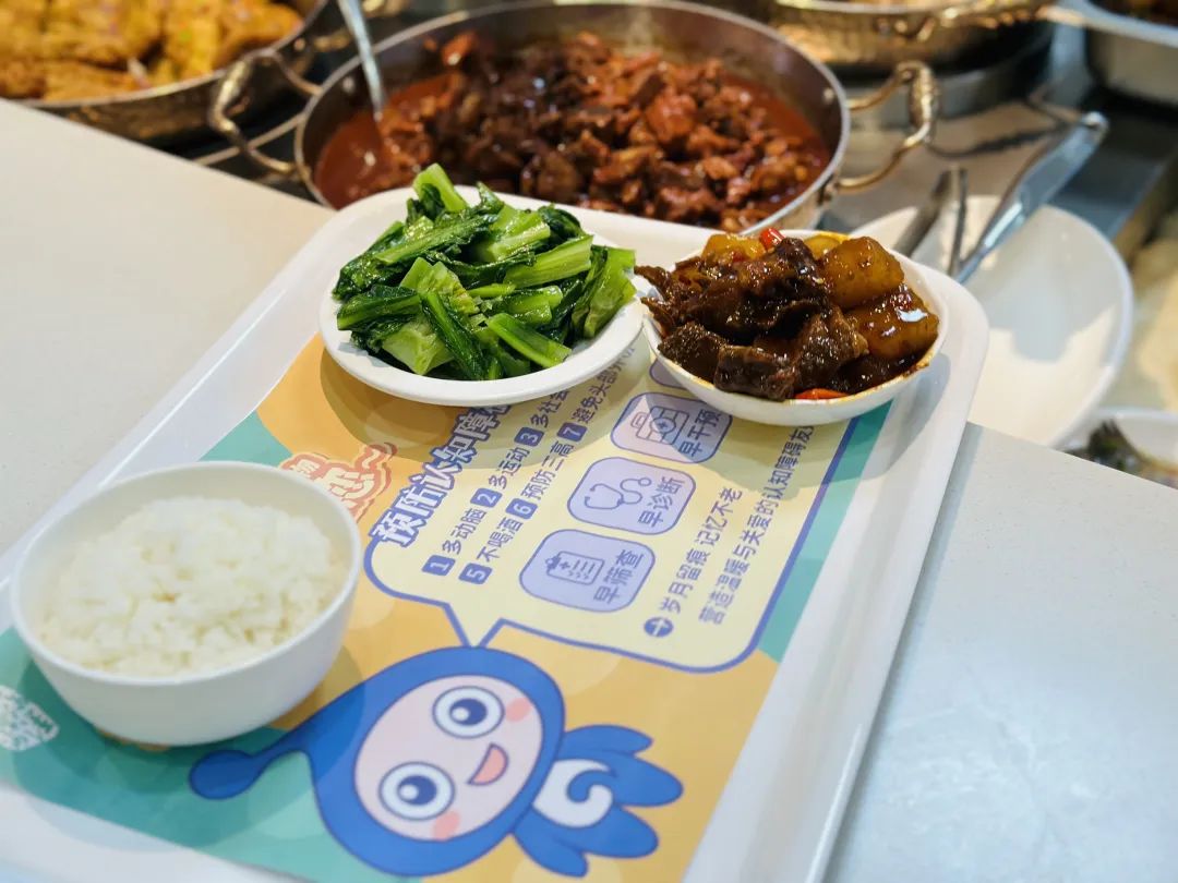 食堂工作人员将带有温馨提示的就餐餐垫放置在每一个取餐盘上,让就餐的居民可以轻松接触到认知健康科普知识。就餐时,不少长者一边享受美食,一边阅读餐垫上的科普内容,关注起自己的认知风险状况,增强健康意识。注意到有长者交流讨论,志愿者还会送上科普资料,方便大家回家学习了解。