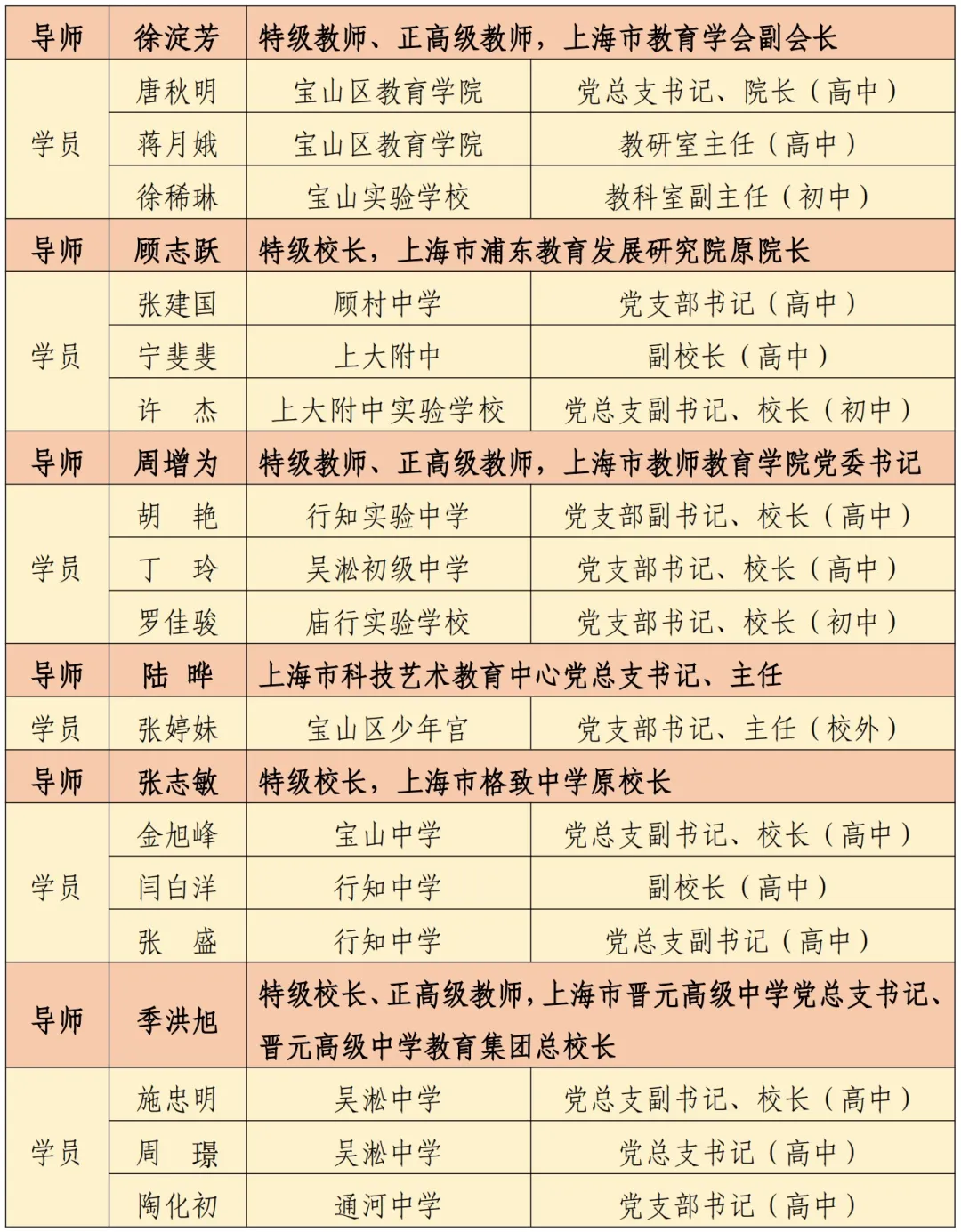 会上对导师团及学员提出殷切嘱托,希望导师团从宝山教育未来发展和教育强区建设的高度出发,为学员们问诊把脉,使学员们不断提升办学治校和教育教学能力;希望学员们抓住结对带教的契机,紧密联系导师,将导师的悉心指导转化为实现理想的“加速器”,在宝山这片沃土赓续行知精神,形成独特的教学风格、办学特色和育人文化。