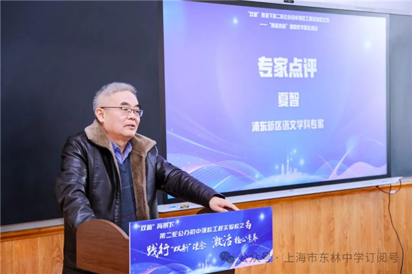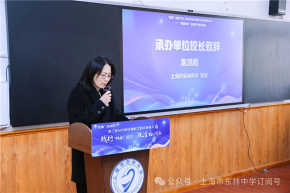 参加此次活动的领导和嘉宾有:浦东新区初中教育指导中心曹佳颖主任、上海市师范大学附属高桥实验中学徐哲玲校长、浦东新区初中教育指导中心陆春芬老师、东林中学的杨斌书记和朱鸿霞校长,还有浦东教育发展研究院的王友老师和沈惠华老师、区语文、数学学科专家夏智老师、齐敏老师和梅隽婕老师。