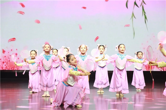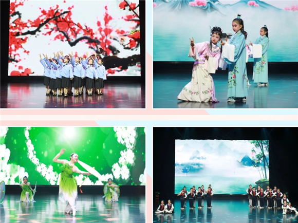 随后,各小学的同学们纷纷登台亮相,展示了各自学校的艺术特色。育童小学的沪剧《红梅赞》展现了地方传统戏剧的魅力;二中心小学的越剧联唱则让观众领略了越剧的婉转细腻;莲溪小学的舞蹈《茉莉花》和北蔡镇中心小学的舞蹈《俏执扇》以优雅的舞姿展现了民族舞的韵味;庆华小学的快板《新弟子规》则巧妙地将传统文化与现代元素相结合,赢得了阵阵掌声。
