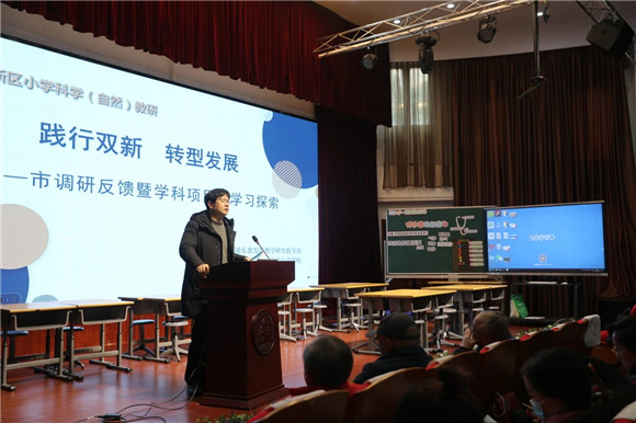 为进一步推进在“双新”背景下的教育改革探索与实践,12月18日下午,以“践行‘双新’ 转型发展”为主题的浦东新区第十六周小学自然(科学)教研活动在进才实验小学西校大华校区顺利举行。活动由浦东新区自然教研员盛桂兴老师主持,上海市教委教研室小学自然教研员赵伟新老师、嘉定区教育学院陈建老师莅临指导,全区一百多位自然教师参加了本次活动。进才实验小学西校赵国弟校长也亲临现场,参与了此次活动。