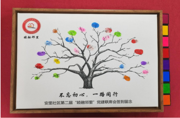 活动期间,党建联盟的成员们共同策划了一项DIY指纹签到树的活动。首先,每位参与者将姓名展示在“树叶”上,随后这些树叶汇聚成一棵大树,象征着每位成员都是党建联盟不可或缺的参与者和建设者,大家齐心协力、步调一致,共同绘制出党建联盟的美好未来。