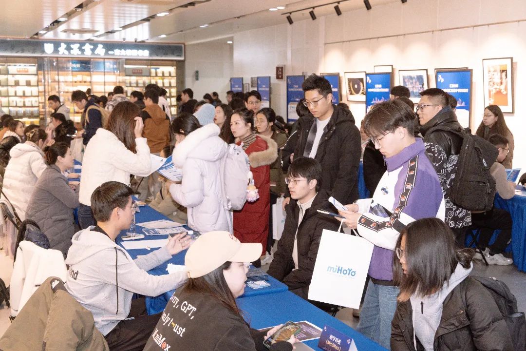本次宣讲会特别突出了“大厂带小厂”的活动特色,用人单位中既包括中国科学院上海分院、应急管理部上海消防研究所等科研机构,上海人工智能实验室、上海交大工业创新研究院、上海尚思自然科学研究院等新型研发机构,中国电信人工智能研究院、申万宏源、吉利集团等行业龙头,米哈游、莉莉丝、星环科技等知名民企,也有阶跃星辰、稀宇科技等初创企业,用“政府搭台、大厂加成”助力初创企业和优秀人才双向奔赴。其中诸如点莘技术、数宗科技、纽酷科技、无限工坊等均为高质量孵化器入驻企业,体现了徐汇作为人才强区、产业高地的“群聚效应”。参与嘉宾与同学现场交流,接收简历,答疑解惑,建立社群,现场气氛热烈。