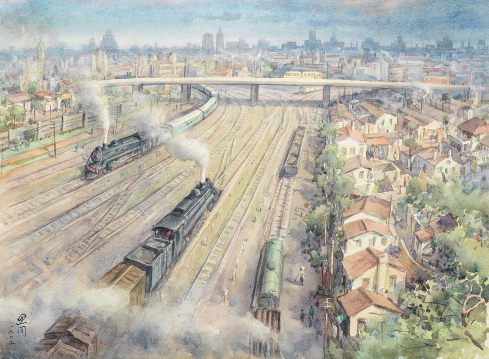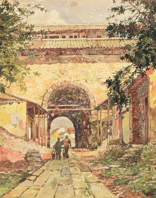 潘思同水彩画作《城门下》《陕南村一角》《共和新路旱桥》