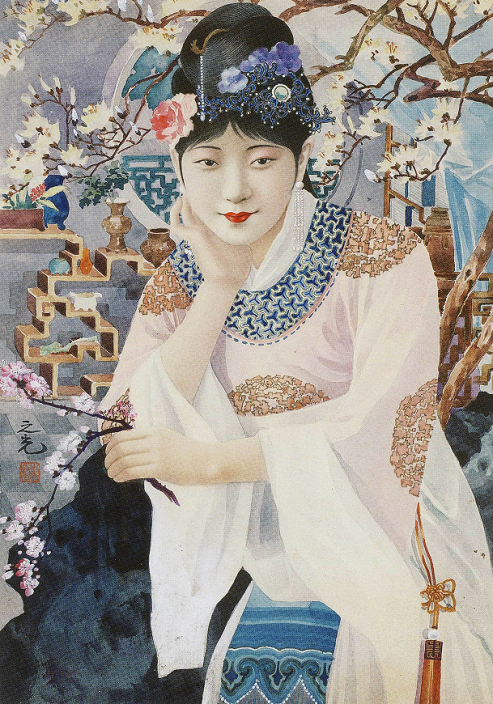 谢之光(1900—1976)是海派著名画家,以月份牌享誉大江南北。谢之光心性洒脱,不拘于传统,他用线、用笔跟别人不一样,画的浓淡对比强烈,擦布、手指皆可作笔,有“画坛怪杰”之称。