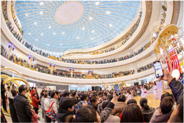 开业期间,平谷万达以“共觅流光,无界共生”为基调,展现流光、潮趣、艺术、传承为主题,引入鲜和PULA·觅光之旅IP艺术展、「非线性生长」北京时装周国际影像展,以及百台无人机、极光之夜、城市定制大片等3大光影首秀,充满冬日新年浪漫的氛围以及巨型雪人艺术装置等场景的搭建,为消费者营造了一个兼具互动、体验、个性的艺术场景。