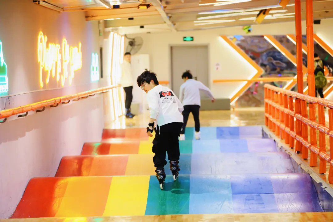 在轮客行轮滑馆1200平方米的宽敞空间里,复古轮滑、桌球、轰趴应有尽有,不仅为孩子们提供了安全的练习环境,也让成年人找回了青春的记忆。高手们时不时地展示几手绝活,引得周围一片惊叹声。张女士感慨道:“看到这么多高手,小朋友也更有动力了。”