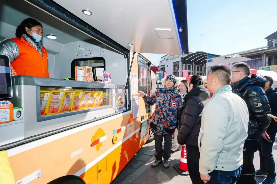 年货节现场,预制菜也成为市民青睐的产品之一。光明旗下联豪带来融合各地风味的酱香牛大骨、猪肚鸡多款预制菜,爱森更是开来了制售车,现场售卖热腾腾的烤肠。苏食、海天下、拾沣、三全、鼎味泰等众多知名品牌齐聚,全国各地美食以“预制”的形式亮相市场,热气腾腾的试吃桌前人头攒动,消费者纷纷下手采购,为的就是“年夜饭轻松做”。