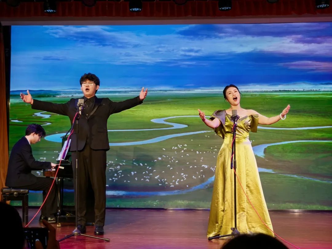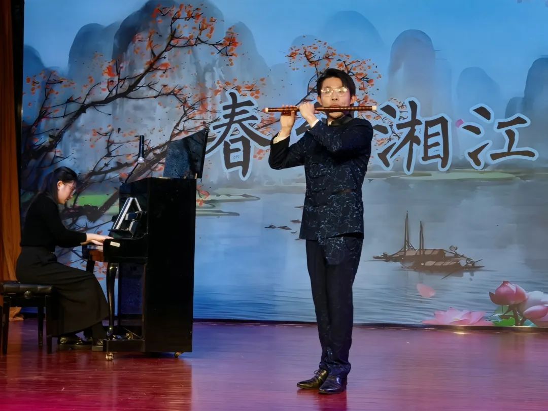 音乐会在青年志愿者的精彩表演中拉开序幕。《青玉案·元夕》的古典韵味与《春到湘江》的欢快激昂交相辉映,前者将诗词意境通过音乐完美呈现,后者则以竹笛与钢琴的美妙配合,展现出湘江两岸的秀丽风光和人们的壮志豪情。流行歌曲《追光者》活力四溢,唱出了年轻人追逐梦想的心声,引发台下观众的强烈共鸣。葫芦丝与钢琴共同演绎的曲目,以及竹笛演奏的乐曲,分别带领观众领略了独特的异域风情,让人如痴如醉。美声版的《一杯美酒》醇厚深情,传递出对生活的热爱。