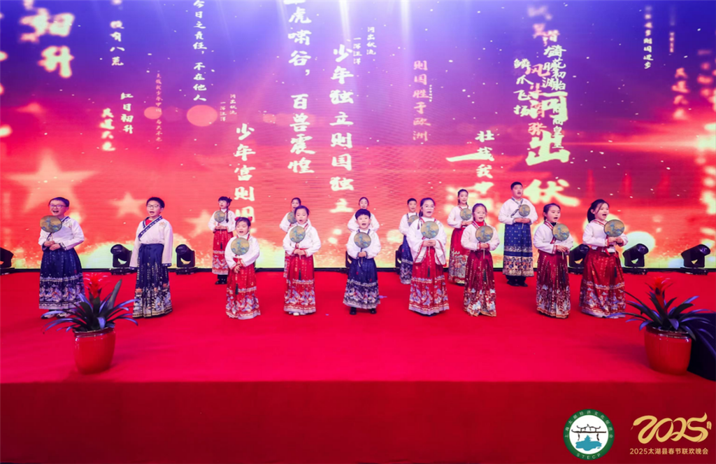 活动当天,氛围热烈而温馨。现场,赵朴初文化、六尺巷文化、黄梅戏文化等背景元素巧妙融入,为年会增添了浓厚的文化底蕴。安徽省工艺美术大师张云华应邀到场,现场作画并进行了陶瓷艺术展演。表演环节,歌舞、少儿走秀、黄梅戏、诗朗诵等节目轮番上演,将现场气氛一次次推向高潮。其中,在沪太湖企业家的孩子们诵读经典篇章《少年中国说》,展现了太湖儿女在新时代的风采。特别推出的《只此青绿》节目,生动展现了安徽太湖人民在大上海的奋斗历程,呈现了安徽、安庆、太湖文化的独特魅力。晚会由上海电视台知名主持人盛诗尧和李守智联袂主持,著名电影表演艺术家赵静、上海音乐学院教授杨学进等嘉宾也倾情献艺,为晚会增添了更多星光。