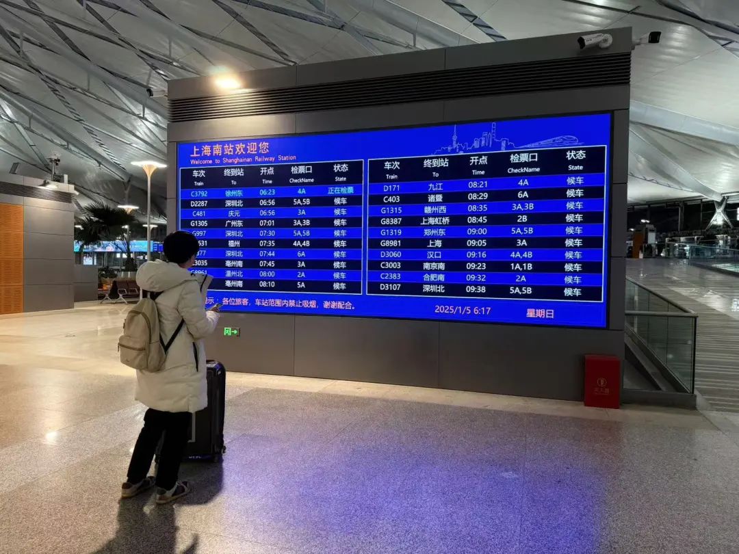 上海南站位于上海市徐汇区西南部,与地铁1号线、3号线、15号线和长途客运南站紧密衔接,是上海对外联系的陆上“南大门”。本次升级改造项目首创“装配滑轨式可移动遮雨棚”结构体系,高效完成了超6万平方米屋面阳光板更换和4.3万平方米穿孔铝板翻新,攻克了全国最大面积的站房屋面阳光板更新改造难题。同时,布局调整后的候车室则更具空间感,可容纳旅客数量扩充至9000人,还增加了自助服务区、自助充电吧台、智能温控直饮水等便民服务设施。此外,为了减少旅客安检进站等候时间,增加至20台安检仪、40个实名制验证闸机。安检通道旁新设有4台轿厢式复位单向门,可以方便携带大件行李的旅客出站。“里面挺大的。”“非常清楚,走一段路就有一个指示牌。”不少旅客首次来到南站乘车,对提档升级后便捷宽敞的上海南站好感倍增。