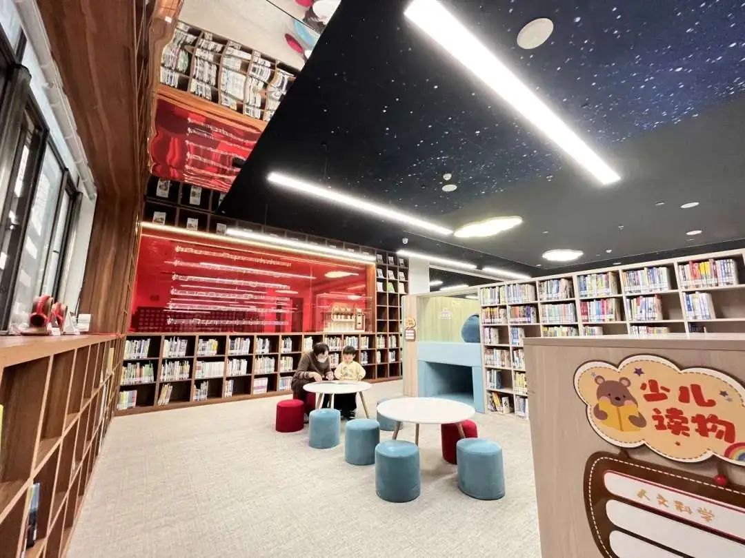 在田林街道图书馆,除了新配备不同年龄段读物,还进一步优化少儿环境装饰和阅读氛围,进行护眼灯光改造,打造AR(增强现实)数字文化馆,购置听书设备、象棋机器人等,并延长夜间开放时间。