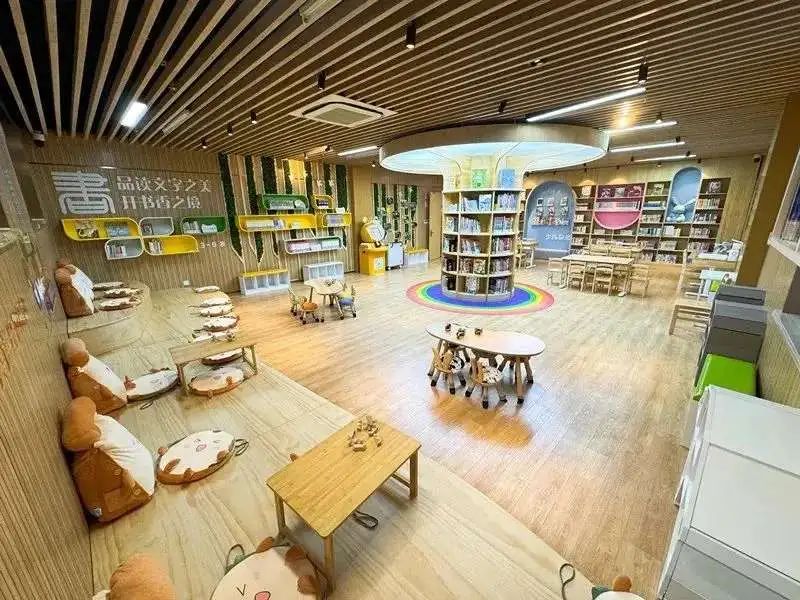 那里空间独立、环境温馨,设施齐全,每一个细节都体现了对“一米视角”的细致关怀。透明的玻璃墙壁、厚实安全的爬垫、温馨可爱的阅读环境、大量优质的绘本,吸引了附近幼儿园和街区的小朋友经常来这里阅读。孩子们来到这里,会自觉地脱鞋,熟门熟路地将鞋子放在鞋架上,然后就奔向书架挑选自己喜爱的绘本。