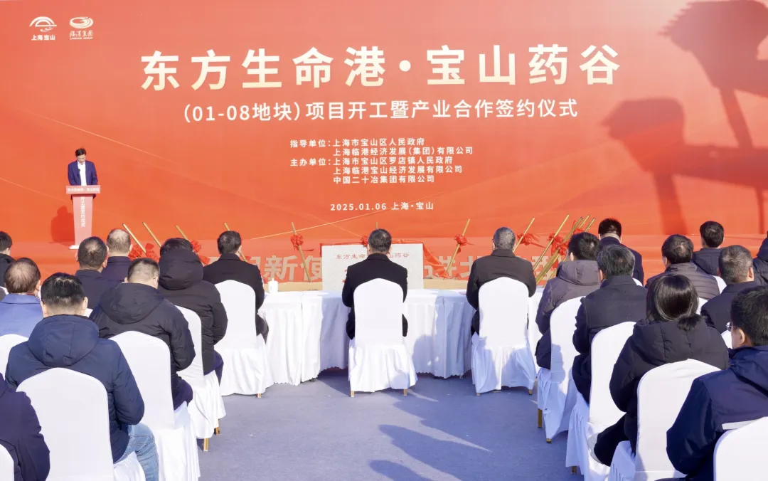 1月6日上午,东方生命港•宝山药谷项目开工暨签约仪式举行,进一步推动宝山生物医药产业集群加速成势。临港集团党委书记、董事长于勇,临港集团党委副书记、总裁翁恺宁,中国二十冶集团党委书记、董事长樊金田,区委书记李晨昊,区委副书记、区长邓小冬,区委常委、副区长王鼐,副区长朱众伟等出席仪式。