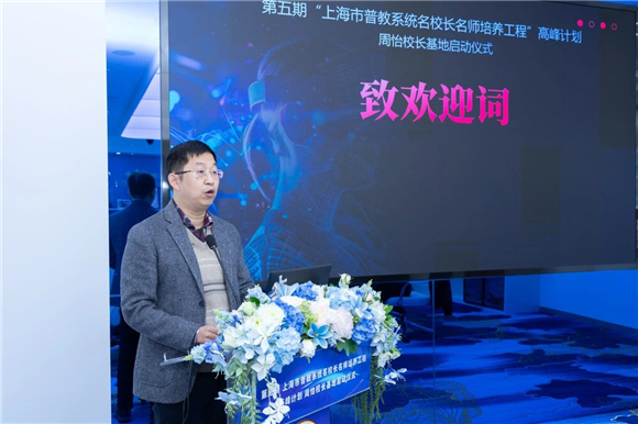 浦东新区小学教育指导中心副主任曹骥代表小教中心送上热情洋溢的欢迎词,拉开了仪式的序幕,表达了对基地未来的美好期许。