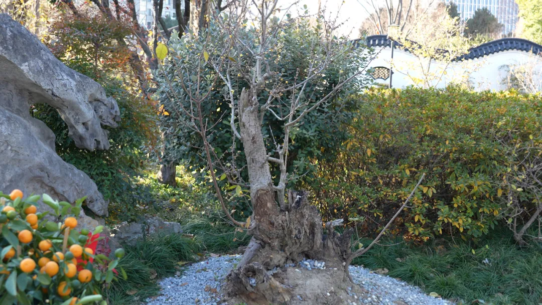 它们形态各异,有的苍劲古朴,有的婉约柔美,每一株都蕴含着岁月的痕迹和生命的坚韧。其中,一株树龄超过300年的老梅桩尤为引人注目,它在一棵枝干上同时长出了狗蝇蜡梅和素心蜡梅两种截然不同的花卉品种,别具一格。目前,真如公园内已有90余盆上百年的蜡梅桩,为游客们提供了更多观赏的乐趣。