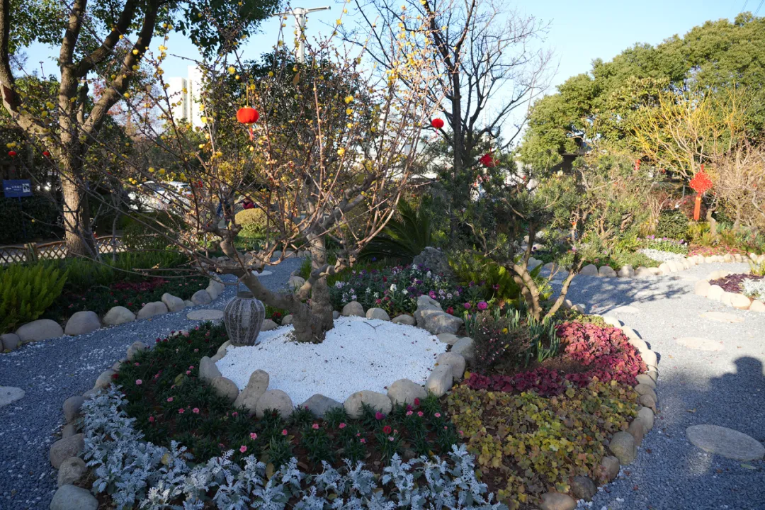 首次亮相的景观园——蜡梅园中园映入眼帘。这个位于公园入口处的景点,精心布置了桩型造型蜡梅盆景,与郁金香、报春花(五色)、洋水仙、花毛茛、银莲花等花卉交相辉映,构成了一幅幅靓丽、喜庆的画面。园中的园路曲径通幽,移步易景,观赏面多元化,让游客在漫步中尽情领略蜡梅的韵味,感受新春佳节的祥和与热闹。