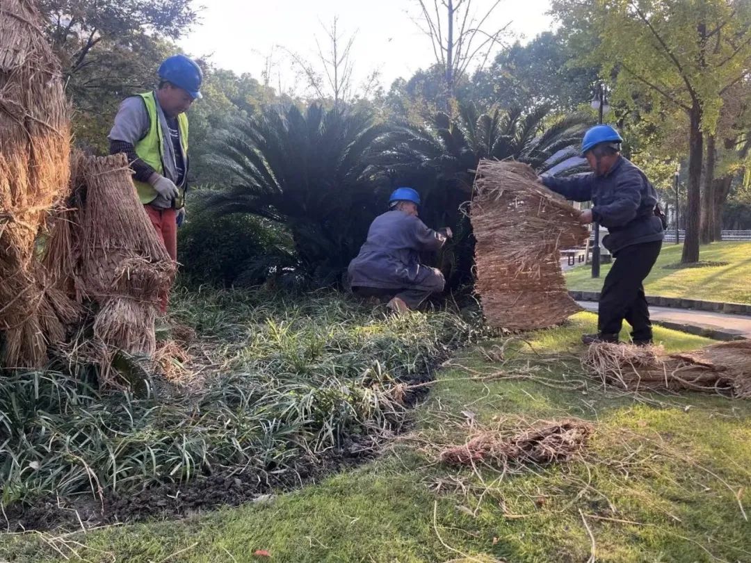 在寒潮来临之际,田林街道对沿街道路树木进行包扎保暖,保障树木安全越冬。同时,街道一线巡查人员也加大了对公共绿地、商业街区、桥梁涵洞等重点区域的巡查管控力度,尤其针对性地提高夜间时段的巡查频次,及时做好流浪乞讨和临时遇困人员的劝导护送、救助服务工作,确保他们能安全度过严寒天气。