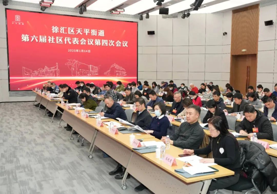 1月14日下午,徐汇区天平街道举行第六届社区代表会议第四次会议。会上回顾了街道2024年主要工作,并发布2025年民生实事项目,涉及为老服务、居住环境、民生服务等方方面面。徐汇区副区长王志华等领导出席。