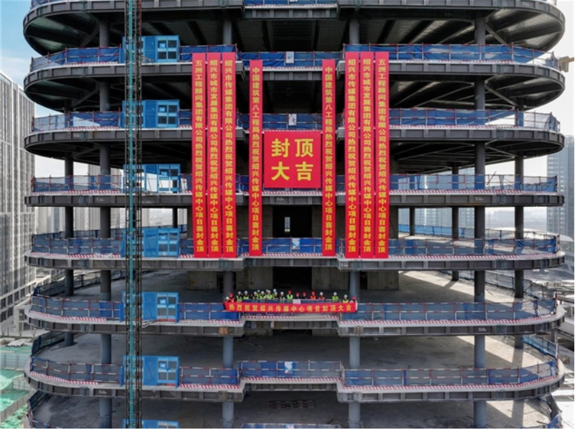 中建八局绍兴传媒中心项目主体结构全面封顶