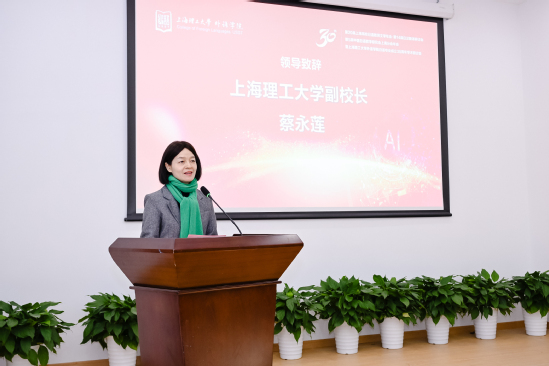 蔡永莲代表主办方致辞,她介绍了上海理工大学多学科综合发展的历程及多年来在人才培养、科学研究和社会服务等方面的努力,殷切希望日语系以三十年办学经验为积淀,结合“AI+”的时代背景,紧密围绕国家和上海市的发展需求,发挥上海理工大学科技外语的人才培养模式特色,探索“AI+”的外语学科发展路径,讲好中国故事,助力国际传播,迎接人工智能时代的机遇和挑战。