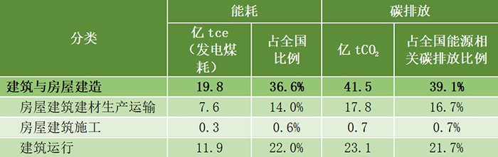 2022年全国建筑与房屋建造碳排放总量及占比情况