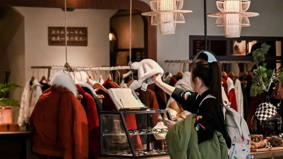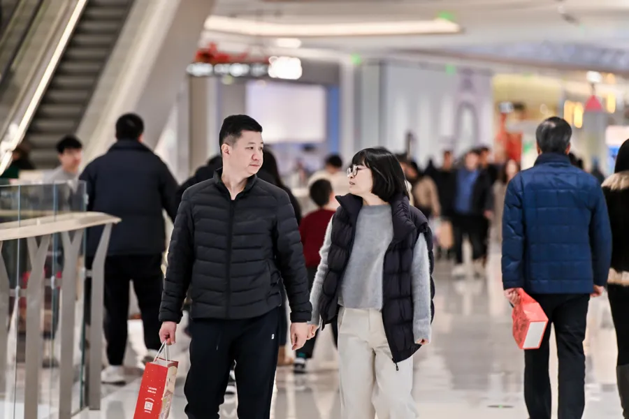 “线上刷短视频种草了美衣后,我直接就团购了优惠券来线下试穿了,合适了立马就买。”90后消费者王芳在普陀区环宇城MAX的西町村屋女装品牌店,一次性就下单了1.3万元的新春服装:“快过年了嘛,买点新衣服是刚需。”王芳笑道,自己拎着大包小包购物袋,看到商场里还有络绎不绝的人和她一样满载而归,这一刻,她真切感受到,年近了,年味来了!
