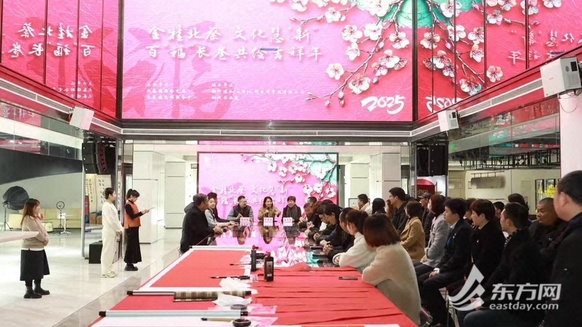 随着农历甲辰龙年辉煌历程的圆满收束,乙巳蛇年的春风如约而至,为北蔡这片热土注入勃勃生机与无限希望。1月20日下午,在上海市浦东新区北蔡镇综合党委、御河园区党总支以及御河书画院的精心策划下,于御河硅谷园区党群服务站举办迎新活动。浦东新区区委社会工作部新兴领域党建处副处长许蕾蕾,北蔡镇党委副书记、综合党委书记庄凤霞等领导出席,现场还邀请来自园区的业主、党员,书画院的书法家和学员,街区的党员和商户们共上百人参加。