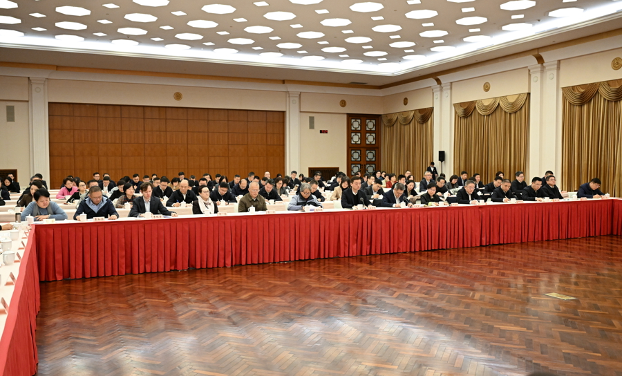 上海市委副书记朱忠明主持座谈会,市领导赵嘉鸣、张为、李政、陈宇剑出席。