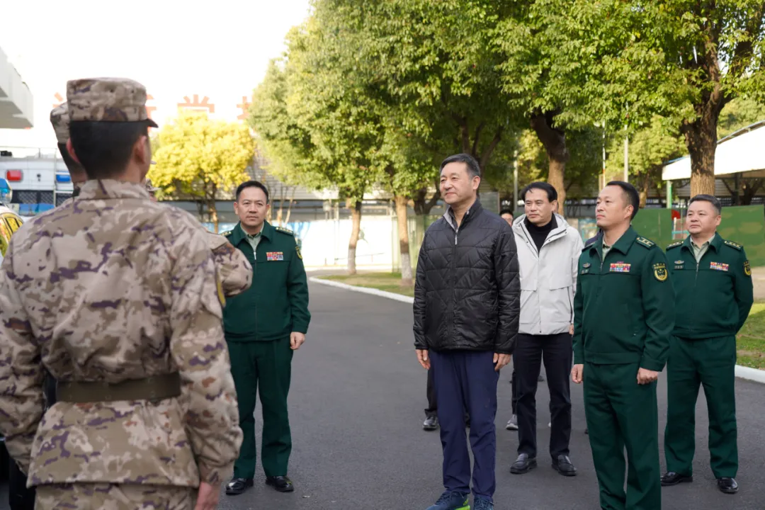 谈上伟一行来到武警某部,观摩了部队迎新春节目表演,详细了解了他们的工作、生活和训练情况,对驻区部队一如既往地支持普陀双拥工作和区域发展表示衷心感谢,对部队在加强军地合作和自身建设方面取得的成绩表示祝贺。他表示,希望大家继续发扬优良传统,再接再厉,练好过硬本领,履行职责使命,始终保持永不懈怠的精神状态和一往无前的战斗姿态,为全区发展贡献力量。