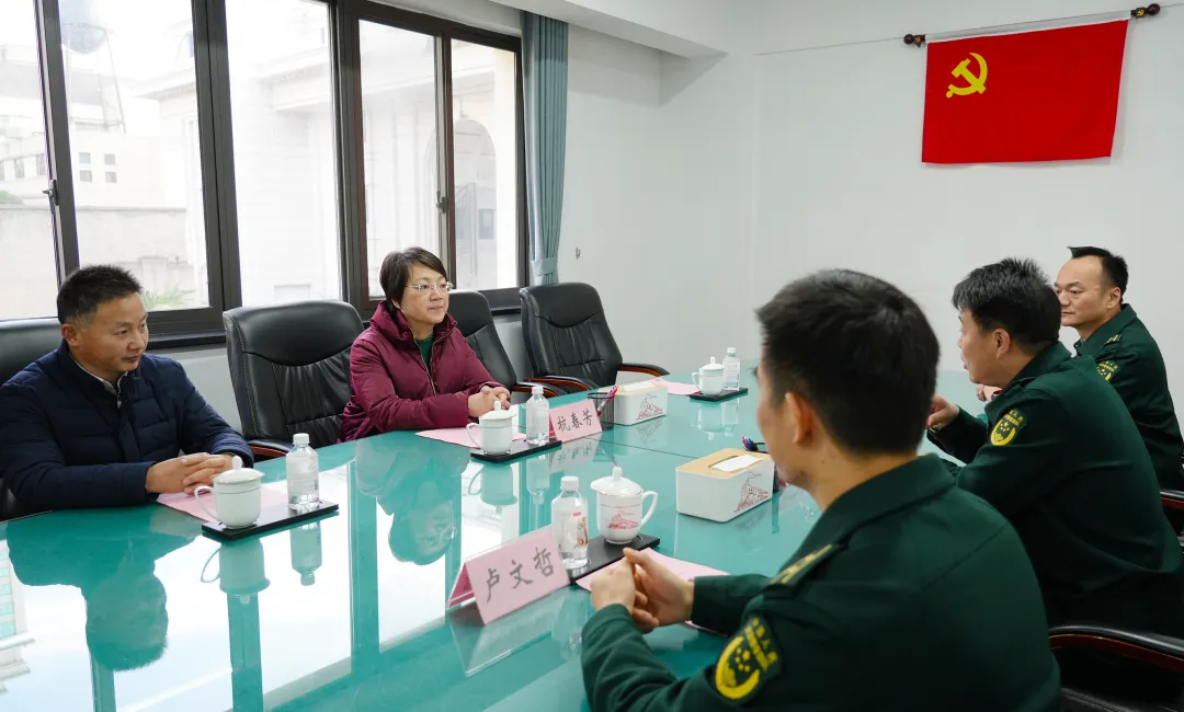 杭春芳一行来到武警某中队,亲切慰问部队官兵,向人民子弟兵送上了新春的问候和祝福。杭春芳详细了解了官兵们的训练和生活,并对他们的辛勤付出表达诚挚感谢。她表示,普陀将一如既往大力支持部队建设,确保各项保障措施落实到位,希望双方能够进一步加强合作联动、深化军地共建,共同为区域发展作出更大贡献。