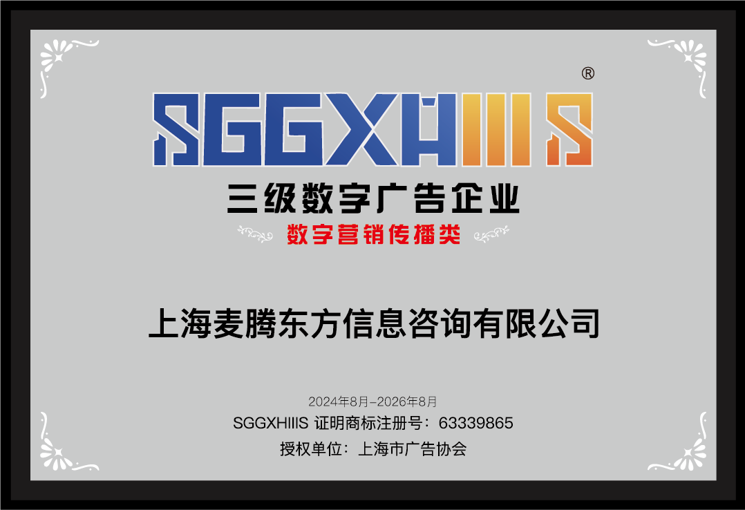 对麦腾东方而言,这次获得“三级数字广告企业”,体现了其作为优秀数字广告服务商的综合实力和行业竞争力,也是对其多年来深耕广告营销服务,助力企业发展的高度认可。