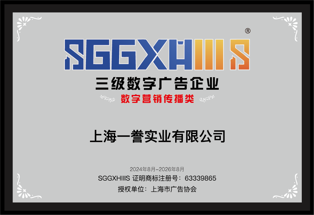 凭借自身特有的广告营销服务,上海一誊实业有限公司(以下简称一誊实业)通过层层审核,被上海市广告协会授予数字营销类“SGGXHIIIS三级数字广告企业”证明商标,这意味着一誊实业在成为数字广告行业先进企业的道路上又迈出了坚实一步。