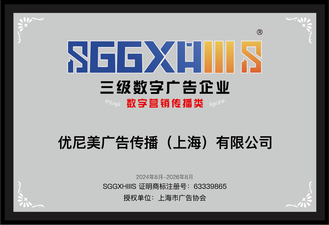 感谢上海市广告协会评委组给与优尼美广告传播(上海)有限公司三级数字广告企业的资格认定。能荣获这项资质不仅是对我们工作的认可,也是激励我们继续创新和努力的动力。我们深知,这份荣誉离不开整个广告行业的发展和同行们的支持。感谢行业为我们提供的丰富资源和无限灵感,让我们能够不断探索和突破。我们将继续追求卓越,为广告行业贡献更多创新和精彩的作品。再次感谢上海市广告协会和所有支持我们的同行。