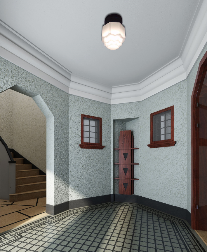 据考证与实地踏勘,底层进门厅马赛克地坪为历史原物,马赛克地坪原则上予以保留,用专用清洗液清理污渍后,损坏及缺损的用同规格、同材质、同样式的马赛克修补。而楼梯水磨石的修复,更是通过一系列复杂而精细的工艺,使得裂缝得以完美封口,与周围地坪浑然一体,打蜡抛光后更是熠熠生辉。