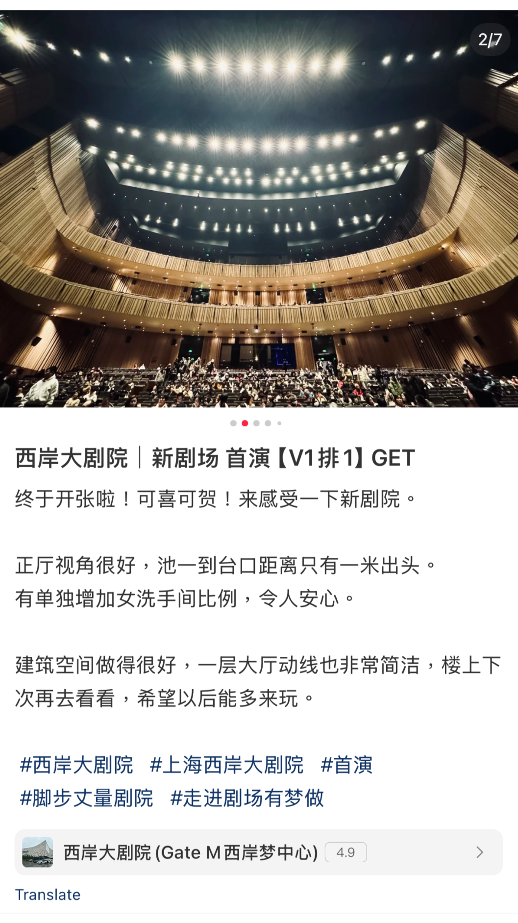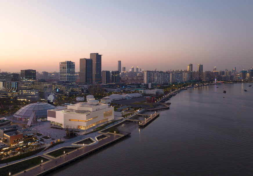 除了观剧,剧院的颜值也是吸引了一大波路人游客拍照打卡。剧院的外立面以凹凸不平的线条诠释了“水岸涟漪”的概念,与几步之遥波光粼粼的黄浦江水遥相呼应。