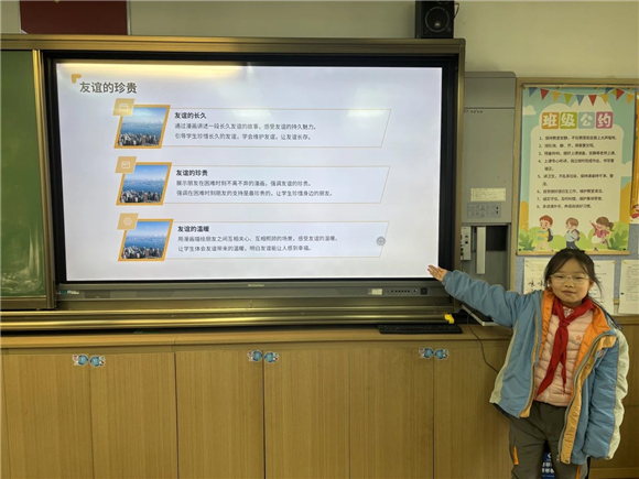 课上,班主任用一段温馨的视频开启了话题。视频里,不同年龄段的人们在友谊中欢笑、陪伴与支持,那一个个画面,就像一把把钥匙,打开了大家记忆的大门。同学们纷纷举手发言,分享自己与朋友之间的难忘故事。有的同学讲述了在考试失利时,朋友给予的鼓励与耐心辅导;有的分享了一起为班级活动努力筹备,从最初的分歧到最终的默契,那些共同挥洒的汗水与收获的欢笑,让友谊在合作中生根发芽。
