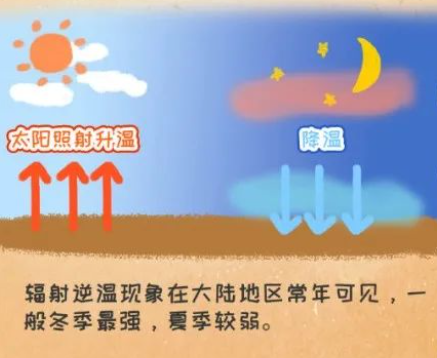 今天早晨,上海崇明等地出现了能见度不足500的大雾。有不少市民好奇:“为什么一回暖,就更容易形成雾甚至霾?”气象专家表示,这跟逆温有关:“大气温度通常是随着海拔高度增加而降低的,但逆温现象却是大气温度随着海拔增加而升高。晴朗的秋冬季节,白天地面受到太阳的照射迅速升温,而到了夜晚,天空中没有云层遮挡,大地就像失去了保温的被子,热量向大气中散失,地面明显降温,而上层空气降温较慢,上暖下冷,这就是辐射降温。”密度大的冷空气在下,密度小的暖空气在上,使得逆温层就像一条厚厚的被子,阻碍了空气的垂直运动,无法形成对流,空气中的污染物也就无法扩散。