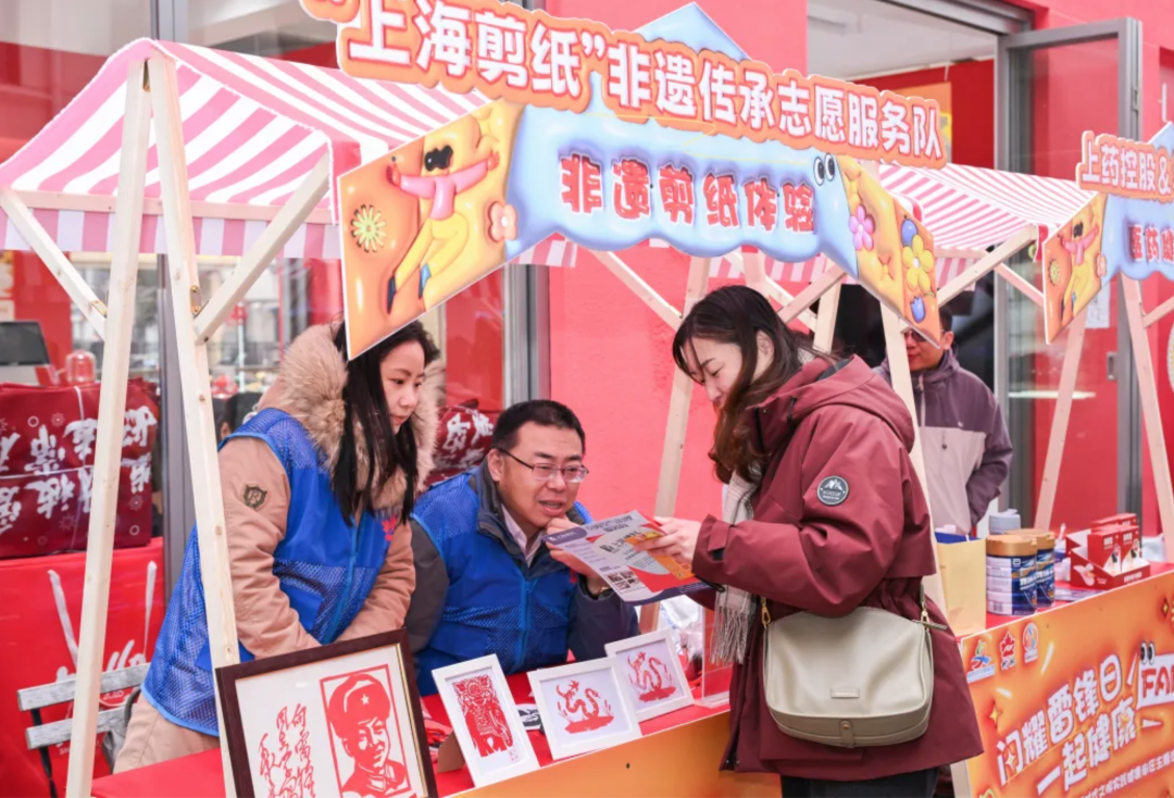 上海中心气象台、上海建科环境以及中国科学院上海有机所、电信一所等爱心单位也设置了义卖摊位,众多科研人员化身“带货达人”,筹得善款捐赠给徐汇区红十字会。上海市心愿久久公益基金会、宏慧创意园区等单位也以不同形式开展志愿服务。“上海剪纸”非遗传承志愿服务队的非遗体验也吸引了众多居民。健康盲盒兑换活动引发居民参与热潮,环保木浆棉擦、公勺公筷等宣传品,让健康理念随日常用品融入生活。