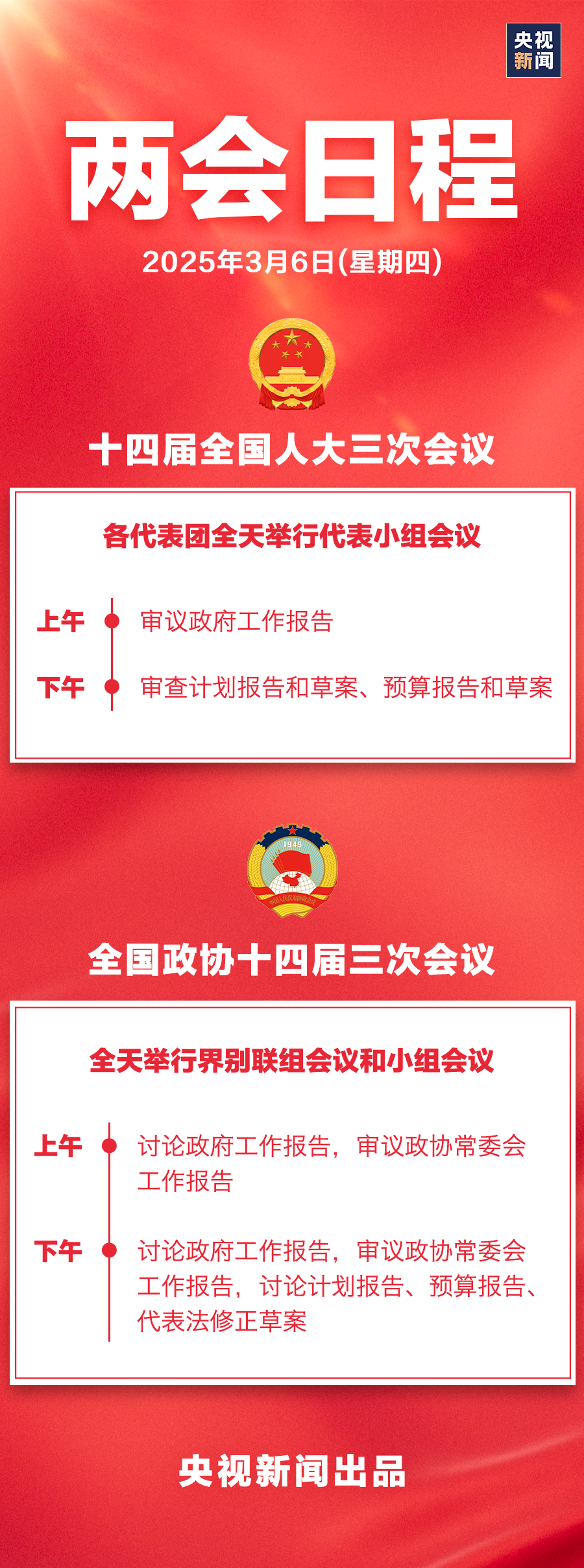 两会3月6日看点丨审议和讨论政府工作报告,人代会审查计划报告和预算报告 ;多位部长将在经济主题记者会答问