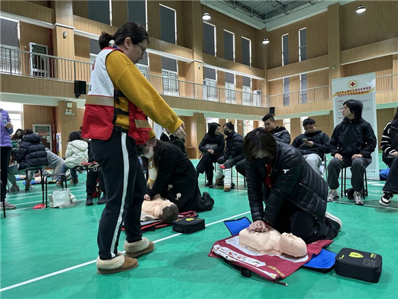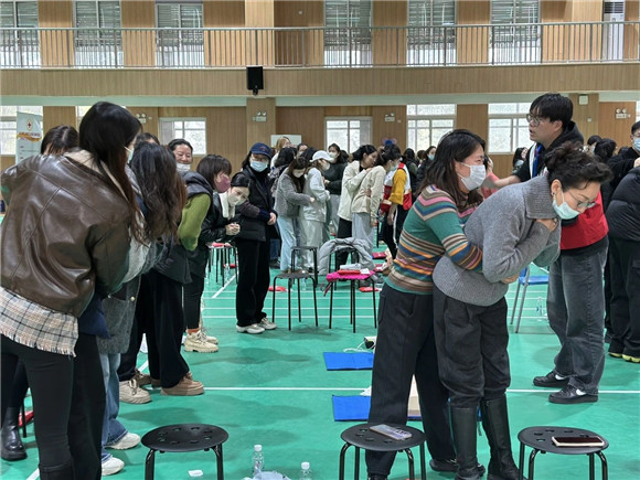 为积极响应《上海市教育委员会关于开展本市普通中小学校教师应急救护培训工作的通知》精神,进一步提升学校教师安全防范意识与应急救护能力,保障师生生命安全。2025年3月9日全天,浦东新区进才实验小学联合花木街道红十字会讲师团队借进才实验小学西校体育馆,分上下午两场共计12组,对全体教师开展了救护员(初级)课程培训。老师们积极参与,共同学习急救基础知识与基本技能,培训内容涵盖救护概论、心肺复苏(CPR)、自动体外除颤仪的使用(AED)、气道异物梗阻处理(海姆立克急救法)、创伤救护(止血、包扎)等。通过线上理论知识学习与线下实践演练考核相结合的方式,老师们积极学习,掌握了在紧急情况下挽救生命的基本技能,为守护校园师生生命健康安全,筑起了一道坚实的防线。最后,近190名参训老师,全员通过了实操考核,获得了《红十字救护员证书》,成为一名合格的初级救护员。